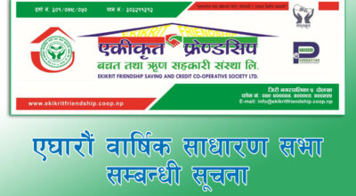 एकीकृत फ्रेण्डसिप साकोसको एघारौं वार्षिक साधारणसभा बस्ने सूचना