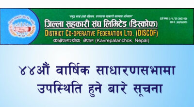 जिल्ला सहकारी संघ काभ्रेको साधारण सभा असोज ४ गते, यस्ता छन् एजेण्डा