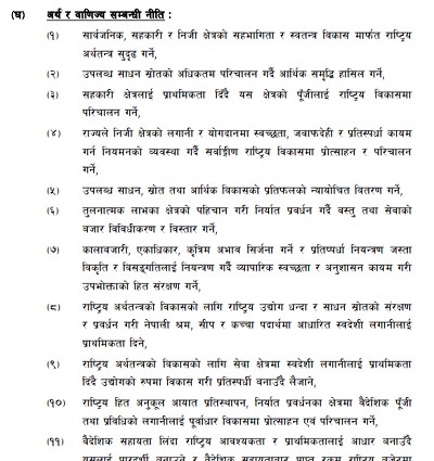 – सार्वजनिक, सहकारी र निजी क्षैत्रको सहभागिता र स्वतन्त्र बिकास मार्फत राष्ट्रिय अर्थतन्त्र सुदृढ गर्ने ब्यवस्था किटान गरिएको छ ।