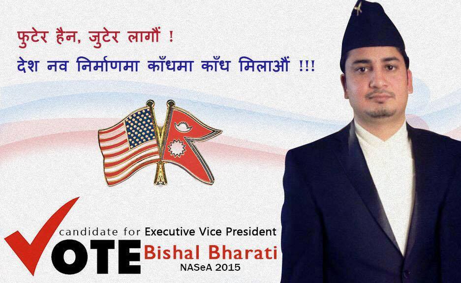 काठमाडौ । आउदो सेप्टेम्बर ४ देखि ६ तारिख सम्म अमेरिकामा हुने नेप्लिज एसोसियशन दक्षिण अमेरिकाको एघारौ सम्मेलनमा त्यँहाको प्रतिष्ठित बैंक वेल्स फर्गोको स्टार म्यानेजर अफ दि इयरको एवार्ड प्राप्त गर्न सफल बिशाल भारतीले कार्यकारी उपाध्यक्ष पदका लागि उम्मेद्वारी घोषणा गरेका छन् । अमेरिकामा पहिलो पटक नेपाली युवाले प्रतिष्ठित बैंकको उत्कृष्ट म्यानेजरको एवार्ड जिते पछी त्यहा रहेको विभिन्न संघ सस्थाले सम्मान गर्नुका साथै संस्थाको नेतृत्व गर्न आग्रह गरेका थिए ।