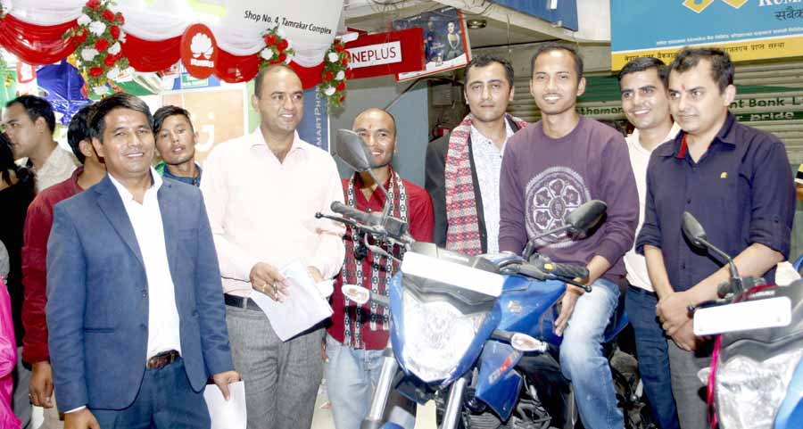 काठमाडौं । दशैंतिहारको बहार ताम्राकार कम्प्लेक्समा मोबाइल किन्दा उपहार नै उपहार योजना अन्तर्गत पहिलो मोटरसाइकल शसेन्द्र बिक्रम चौधरीले पाएका छन् । उनले ताम्राकार कम्प्लेक्समा १५ हजार पर्ने एमआइको एवान ४ ए मोबाइल किनेका थिए ।