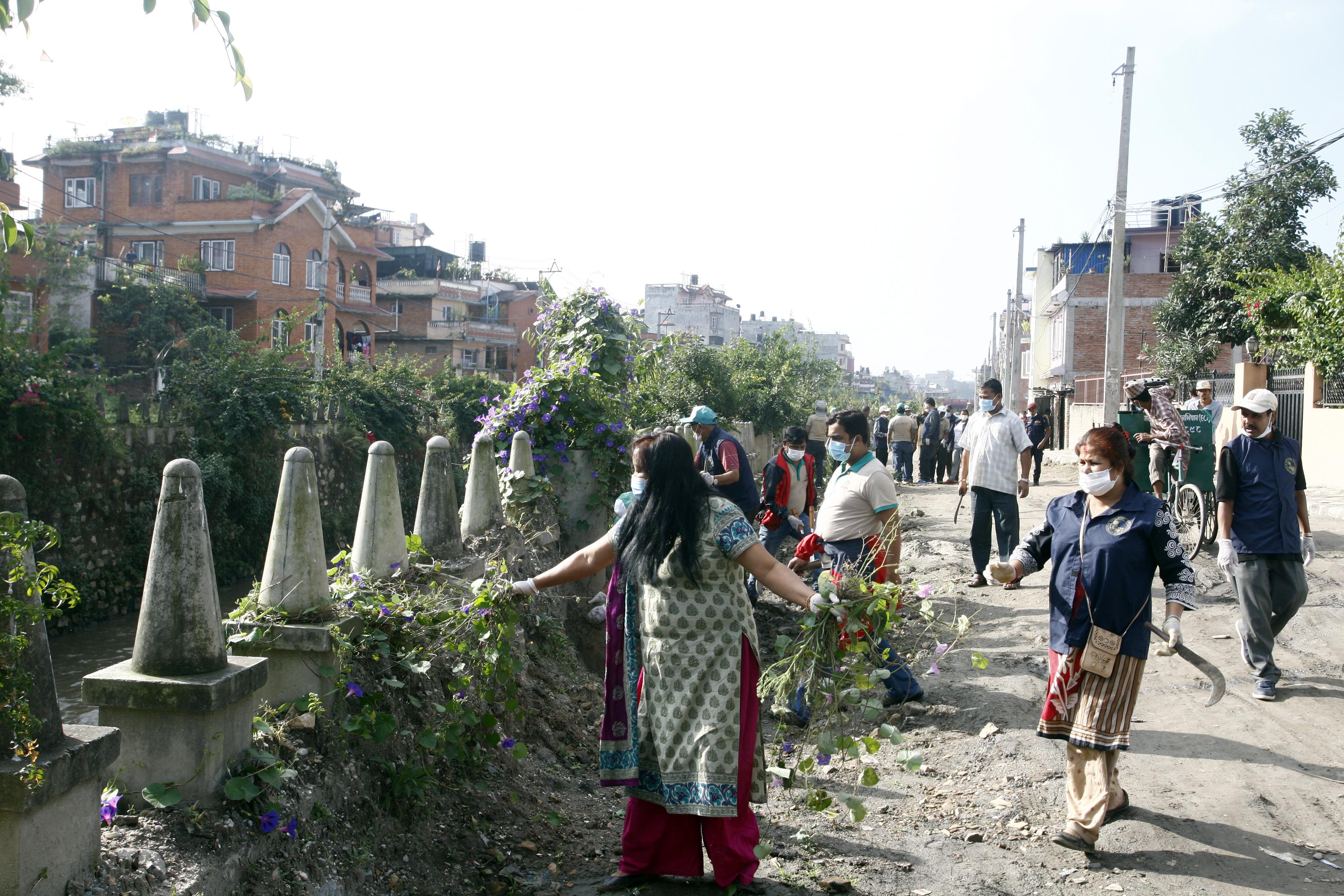 काठमाडौं । फलोरिकल्चर एसोसिएसन नेपाल फयानको अगुवाईमा शनिबार काठमाडौको रुद्रमति नदी (धोबीखोला)को सरसफाई सहित आफैले लगाएका बोट बिरुवाको गोडमेल गरेको छ । आफ्नो रजत महत्वसब मनाउने क्रममा फ्लोरिकल्चर एशोसिएशन नेपालले स्थानिय रुद्रमति सरोकार समाज र वाताबरण संरक्षण अभियानको सहकार्यमा रुद्रमति नदीको रातो पुल कालो पुल र सेतो पुलमा रहेको फोहर सरसफाई गरेको हो ।