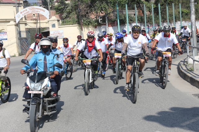 काठमाडौं । सन्राइज बैंक लिमिटेडले आफ्नो दशौैं वार्षिकोत्सवको उपलक्ष्यमा साइकल ¥याली कार्यक्रम आयोजना गरेको छ ।“You and Us, Together for Environment“ भन्ने मुल नाराका साथ बैंकको प्रधान कार्यालय गैह्रिधारा बाट शुभारम्भ गरिएको उक्त कार्यक्रममा बैंकका संचालक समितिका संचालकहरु डा. भोगेन्द्र गँुरागाई , ई.बच्छराज तातेड, ज्योति कुमार बेगानी, दीपक नेपाल र बैंकका प्रमुख कार्यकारी अधिकृत रत्नराज बज्राचार्यबाट संयुक्त रुपमा रिबन काटेर शुभारम्भ गरेका थिए ।