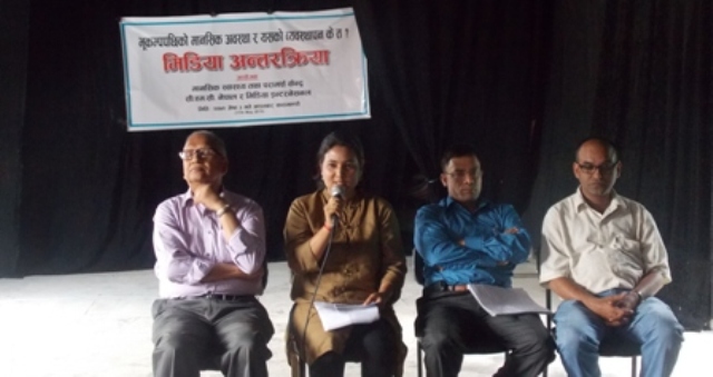 कार्यक्रममा मानसिक रोग विशेषज्ञ डा. कपिल देव उपाध्यायले भुकम्पका कारण भन्दा पनि त्रासले भाग्ने र फाल हाल्ने गर्दा धेरै मानिस सन्त्रासमा बाँचेको बताए । उनले भूकम्पका कारण करिव १० प्रतिशत मानिसमा कुनै न कुनै मानसिक समस्या देखा पर्ने उल्लेख गरे । ८० प्रतिशत मानिसको आफै समस्या समाधान हुने बताउँदै उनले अरु १० प्रतिशतलाई ढिलो समस्या समाधान हुने बताए । तर १० प्रतिशत मानिसमा भने कुनै न कुनै समस्या उत्पन्न हुन सक्ने भन्दै उनले वालवालीका, महिला र एकल व्यक्तिलाई प्रशिक्षण र परामर्शको जरुरी हुने बताए । वाल मनोविद् करुणा कुँवरले पुरुष भन्दा महिला नै आपतविपद्लाई सामना गर्ने कुरामा सबल रहेको तथ्य प्रस्तुत गरीन् । उनले आफ्नो दैनिक कार्यलाई सामान्य रुपमा अघि बढाउनु पर्ने बताउँदै वालवालिकालाई खुल्ला ठाउँमा बढी परिचालन गर्न सुझाइन् । साथै उनले भुकम्पबाट भएका यथार्थ कुराहरु वालवालिकासामु लुकाउन नहुनेमा जोड दिइन् ।