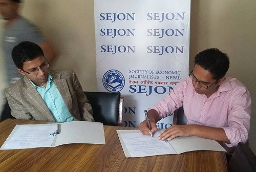काठमाडौं । नेपाल आर्थिक पत्रकार समाज (सेजन) ले सेक्युरिटिज रिसर्च सेण्टर एण्ड सर्भिसेज (एसआरसीएस) सँगको सहकार्यमा आर्थिक पत्रकारलाई निःशुल्क पूँजीबाजार सम्बन्धी तालिम दिने भएको छ । सेजन र एसआरसीएसबीच सो सम्बन्धी समझदारीपत्रमा सोमवार हस्ताक्षर भएको छ ।