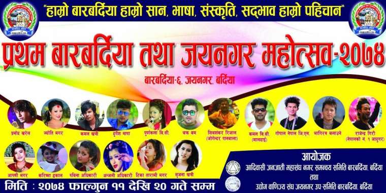 बर्दिया।बर्दियाको पहिचानका लागि प्रथम बारबर्दिया तथा जयनगर महोत्सव २०७४ आगामी फागुन ११ गतेदेखि सञ्चालन हुने भएको छ ।