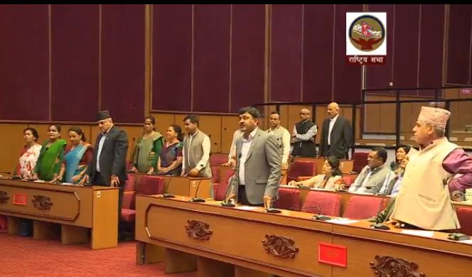 काठमाडौं । राष्ट्रियसभाको आजको बैठक प्रमुख प्रतिपक्षी दल नेपाली काँग्रेसको अवरोधका कारण स्थगन भएको छ । बैठकको शुरु मै काँग्रेसका सदस्यहरूले आसनबाट उभिएर विरोध जनाइरहँदा राष्ट्रियसभा अध्यक्ष गणेशप्रसाद तिमिल्सिनाले नेकपाका प्रमुख सचेतक खिमलाल भट्टराईलाई बोल्न समय दिएका थिए।