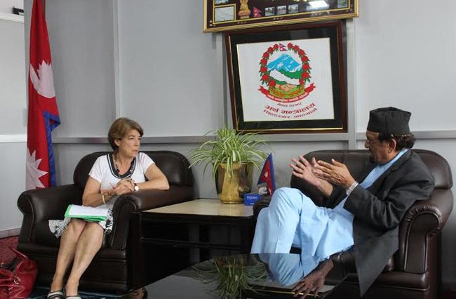 काठमाडौं । नेपालका लागि फ्रान्सका राजदूत मार्टिन बासेरोले अर्थमन्त्री डा रामशरण महतसँग पुनर्निर्माण सहायताका बारेमा छलफल गरेकी छन् । उनले नेपालले गर्न लागेको सहायता सम्मेलनका विषयमा पनि अर्थमन्त्रीसँग छलफल गरिन् ।