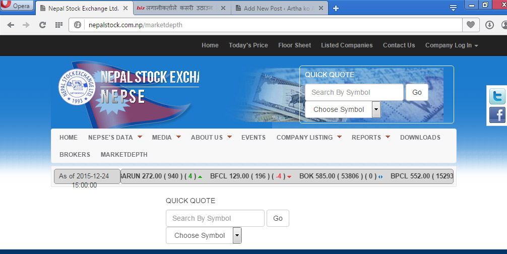 काठमाडौं। नेपाल स्टक एक्सचेञ्ज(नेप्से)ले आइतबारबाट मार्केट डेफ्थ प्रणाली हेर्न मिल्ने सुविधा वेवसाइटमा थपेको छ । एक्सचेञ्जले आफ्नो आधिकारिक वेवसाइटमा मार्केट डेफ्थ नामक छुट्टै लिंक नै राखेर फ्लोर सिट हेरे जस्तै गरी बजार खुला हुँदाको समयमा खास कम्पनीको के कति शेयरको माग अर्थात किन्न खोजिएको छ र के कति शेयरको आपूर्ति अर्थात बिक्री गर्न खोजिएको छ भन्ने जानकारी पाउन सक्छन् ।