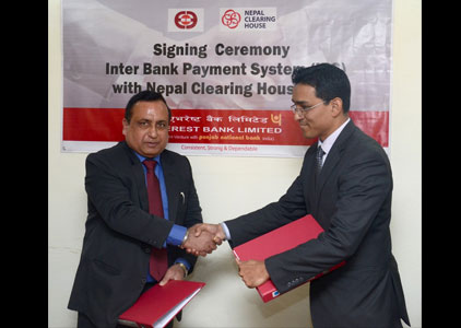 काठमाडौं। एभरेष्ट बैंकले नेपाल क्लियरिङ्ग हाउससँग अन्तर बैंक भुक्तानी सेवा सम्बन्धी सम्झौता गरेको छ । बैंकको प्रधान कार्यालयमा भएको एक कार्यक्रममा बैंकको तर्फबाट प्रमुख कार्यकारी अधिकृत ए।के। अहलुवालिया र नेपाल क्लियरिङ्ग हाउसको तर्फबाट प्रमुख कार्यकारी अधिकृत निलेश मान सिंह प्रधानले हस्ताक्षर गरे ।