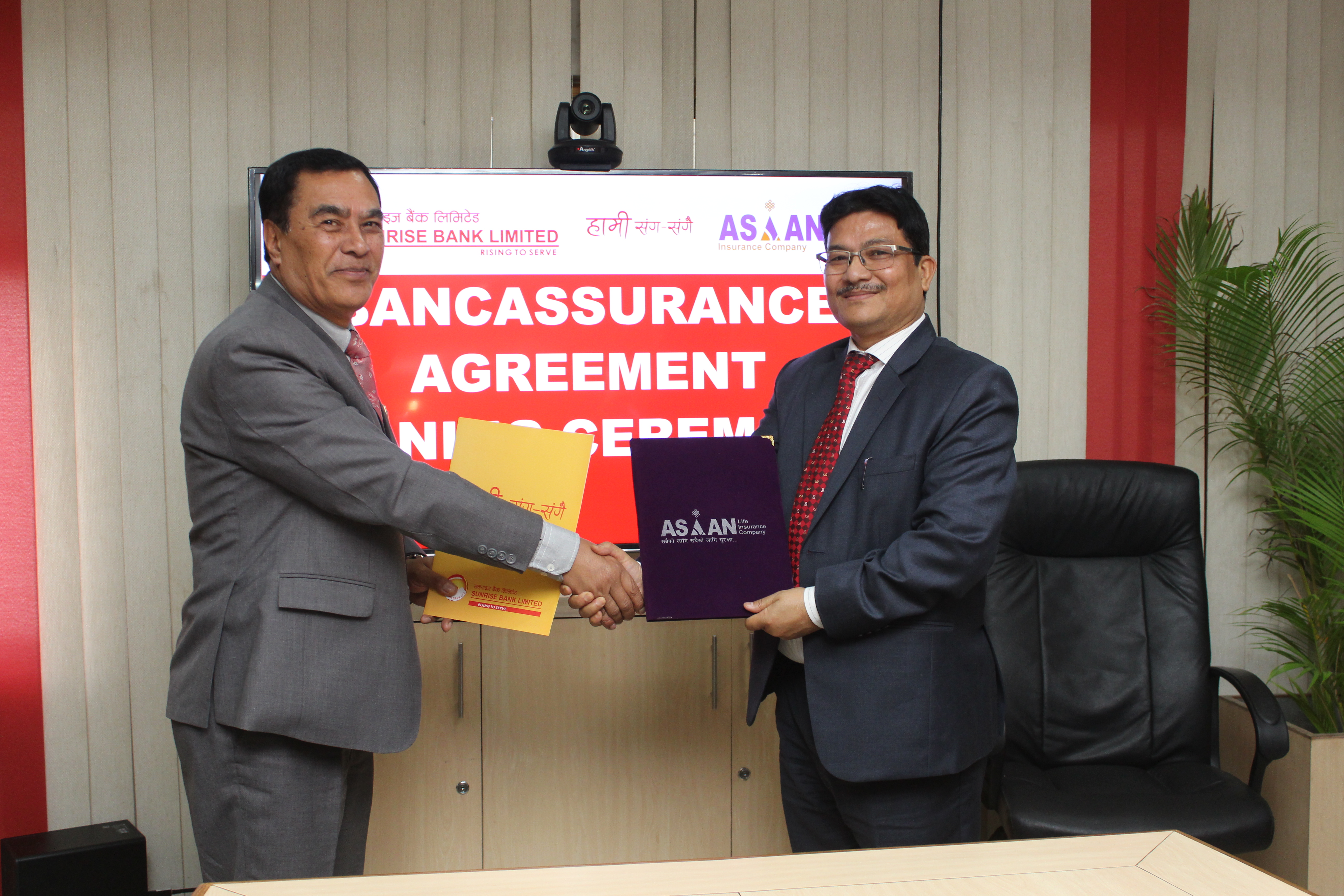 काठमाडाैँ । सनराइज बैंकबाट एशियन लाईफ इन्स्योरेन्सको बीमा सेवा पाइने भएको छ । बैंक र इन्स्योरेन्स कम्पनीबीच उक्त सेवा सम्बन्धी सम्झौता भएको हो । उक्त सम्झौतापत्रमा बैंकका प्रमुख कार्यकारी अधिकृत रत्नराज बज्राचार्य र इन्स्योरेन्सका प्रमुख कार्यकारी अधिकृत राजेश कुमार श्रेष्ठले सयुक्त रुपमा हस्ताक्षर गरे ।