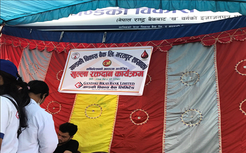 काठमाडाै । गण्डकी विकास बैंकको चितवनस्थित भरतपूर शाखाले आफ्नो आठौँ वार्षिकोत्सवको अवसर पारेर रक्तदान कार्यक्रम सम्पन्न गरेको छ ।