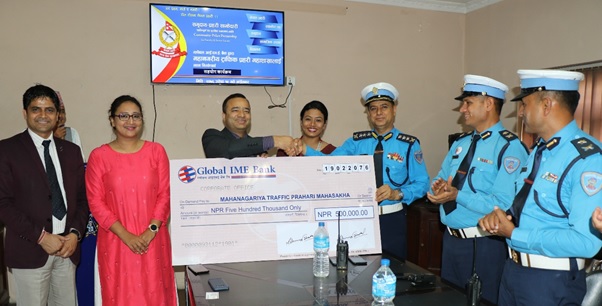 काठमाडौं । ग्लोबल आइएमई बैंकले महानगरिय ट्राफिक महाशाखालाई आर्थिक सहयोग गरेको छ । बैंकले आफ्नो संस्थागत सामाजिक उत्तरदायित्व शीर्षकअन्तर्गत नेपाल प्रहरीको समुदाय–प्रहरी साझेदारी कार्यक्रमअन्तर्गत महानगरीय ट्राफिक प्रहरी महाशाखालाई भवन निर्माणका लागि ५ लाख रुपैयाँ सहयोग गरेको हो ।