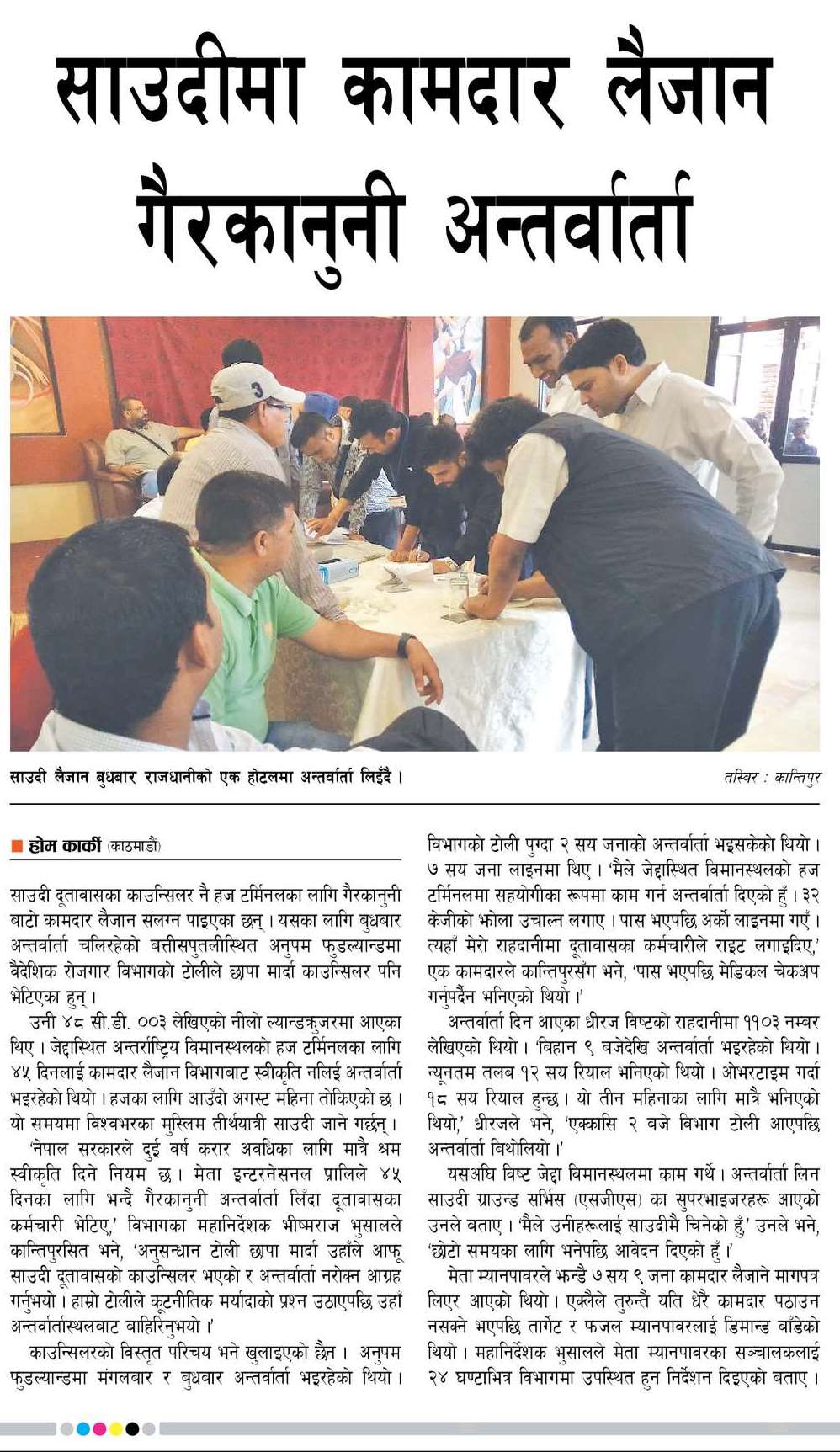 साउदी दुतावासका काउन्सिलर नै हज टर्मिनलका लागि गैर कानुनि बाटोबाट कामदार लैजान संलग्न भएको पाइएको छ ।कान्तिपुर दैनिक बाट
