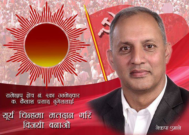उनी माओवादी उम्मेदवारसँग पराजित भएका हुन् ।नेकपा एमालेका जिल्लास्तरीय नेता ढुंगेललार्इ हालै बसेको मन्त्रीपरिषद् बैठकले नियुक्त गरेको हो । बोर्डमा विज्ञलार्इ नियुक्त गरिदै आएको थियो । बाेर्ड पशुपक्षी विकास मन्त्रालय अन्तर्गत पर्छ । यो मन्त्रालयमा एमालेकातर्फबाट शान्ता मानवी मन्त्री छिन् । ढुंगेलले विहिवार पदबहाल गरेका छन् । पदबहाल कार्यक्रममा सरोकारवाला निकायहरुलार्इ समेत बोलाइएको थियो ।