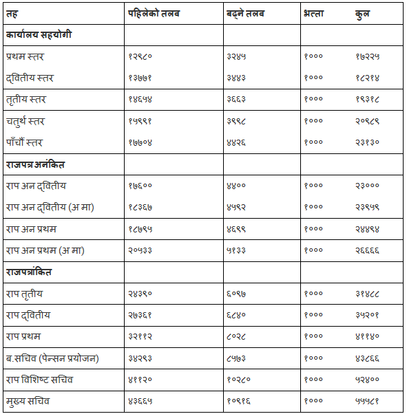 चालू आर्थिक वर्षको लागि १० खर्ब ४८ अर्ब ९२ करोड १३ लाख रूपैयाँको बजेट विनियोजन गर्दै सरकारले कर्मचारीको विद्यामान तलवमा २५ प्रतिशतले हुन आउने गरी तलबमा बृद्धि गरेको छ । कस्को तलव कति बढ्यो प्रकाशित : 28 May, 2016 1:38 pm