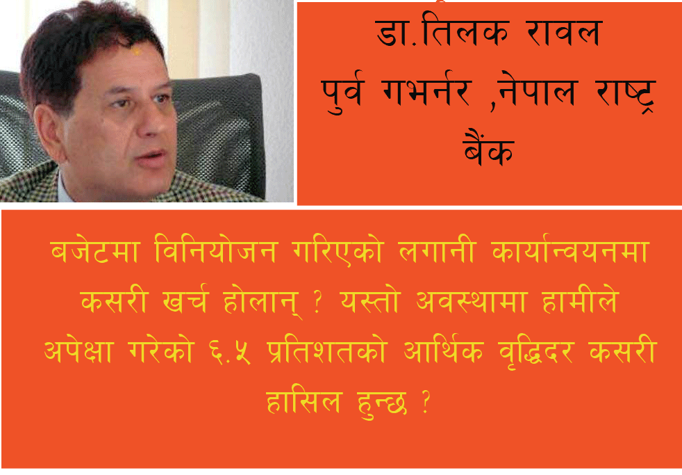 बजेट त आउछ योजना त हुन्छन । तर,बजेटमा विनियोजन गरिएको लगानी कार्यान्वयनमा कसरी खर्च होलान् ? यस्तो अवस्थामा हामीले अपेक्षा गरेको ६.५ प्रतिशतको आर्थिक वृद्धिदर कसरी हासिल हुन्छ ? योजना अनुसार आर्थिक वृद्धिदर हासिल गर्न लागिरहेको अवस्था छ की छैन भन्ने बिषयमा ध्यान दिन जरुरी छ । सरकारले यता पनि सोच्नु जरुरी देखिन्छ ।