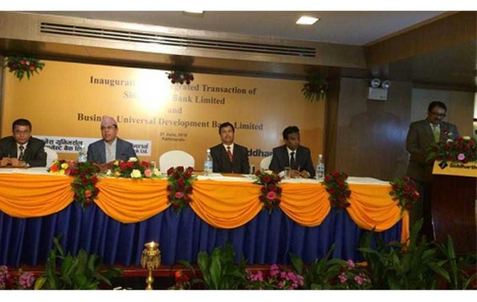 काठमाडौं। सिद्धार्थ बैंक र बिजिनेश युनिभर्सल डेभलपमेन्ट बैंकबीच मर्ज पुरा भएपछि मंगलबारदेखि संयुक्त कारोबार थालेका छन् । बैंक मर्जर पश्चात बनेको सिद्धार्थ बैंक लिमिटेडको नामबाट सञ्चालनमा आएको हो । मंगलबार एक कार्यक्रमका बीच नेपाल राष्ट् बैंकका गभर्नर डा. चिरञ्जीवी नेपालले एकिकृत कारोबारको शुभारम्भ गरे ।