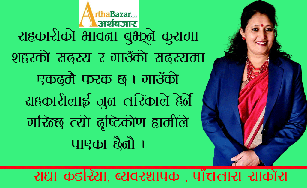 सहकारीको भावना बुझ्ने कुरामा शहरका सदस्य र गाउँका सदस्यमा एकदमै फरक छ । गाउँका सहकारीलाई जुन तरिकाले हेर्ने गरिन्छ त्यो दृष्टिकोण हामीले पाएका छैनौ ।