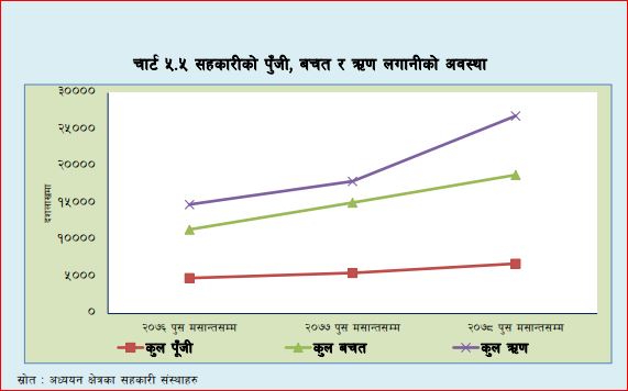 त्यसैगरी अघिल्लो बर्षको पुस मसान्तको तुलनामा गत बर्ष पुस मसान्तमा सहकारीको कुल बचत २४.९ प्रतिशत र कुल कर्जा ४९.५ प्रतिशतले बढेको छ । २०७७ पुस मसान्तमा सहकारीको बचत ३२.० प्रतिशत र कर्जा २१.२ प्रतिशतले बढेको थियो ।