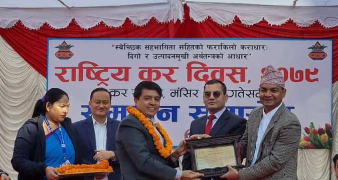 काठमाडौं । रेमिटेन्स कम्पनीमध्ये आर्थिक वर्ष २०७७/७८ मा सबैभन्दा बढी कर तिर्ने रेमिटेन्स कम्पनीका रूपमा आईएमई सम्मानित भएको छ । आन्तरिक राजस्व विभागले राष्ट्रिय कर दिवसका अवसरमा बुधबार आयोजित एक विशेष समारोहकाबीच आईएमई ग्रुपका अध्यक्ष चन्द्रप्रसाद ढकालले उक्त सम्मान ग्रहण गरेका हुन् ।