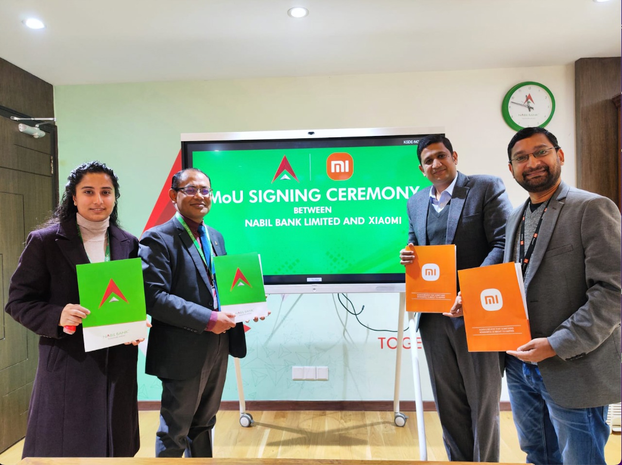 सम्झौतामा नबिल बैंकका तर्फबाट वरिष्ठ नायब प्रमुख कार्यकारी अधिकृत सुजितकुमार शाक्य र शाओमी नेपाल, नेपाल प्रमुख अमित कुमार पन्डा, रमेश कर्पोरेशनका कार्यकारी निर्देशक सञ्जय अग्रवालले संयुक्त रुपमा हस्ताक्षर गरेका छन् ।