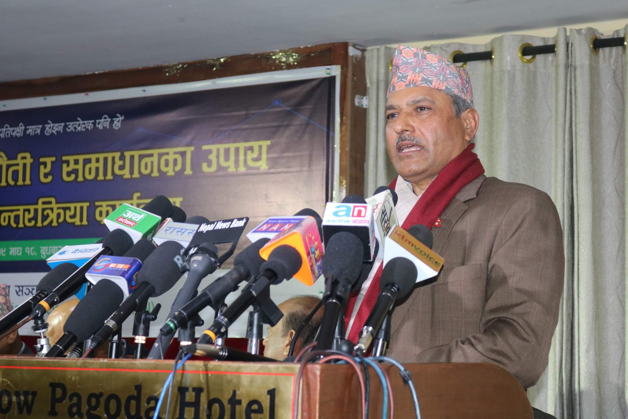 त्यसैगरी, उनले आयातमा निर्भर राजश्व रहेको तथा वस्तु तथा सेवाको आयात धान्न देशका युवाहरुलाई निर्यात गर्नु परेको अवस्था रहेकोले यो संरचना सुधार्नु पर्ने पनि बताएका छन् । यसलाई आजको भोलि नै सुधार गर्न नसकिने भएकोले रणनीतिक रुपमा दिर्घकालिन हिसाबले अगाडी बढ्नु पर्ने बताए ।