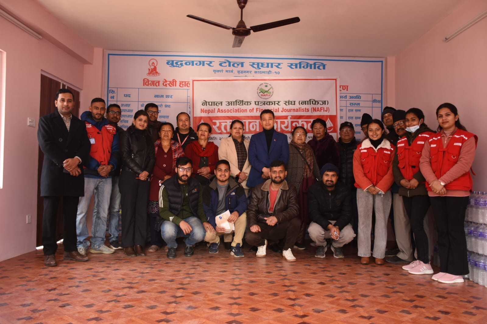 कार्यक्रममा नाफिजका उपाध्यक्ष मेनुका कार्कीले नाफिजले आर्थिक पत्रकारको क्षमता विस्तारका निमित्त विविध गतिविधि गर्दै आएकामा समाजप्रति पनि दायित्व सम्झेर पटकपटक रक्तदान कार्यक्रम आयोजना गर्दै आएको जानकारी दिइन् ।