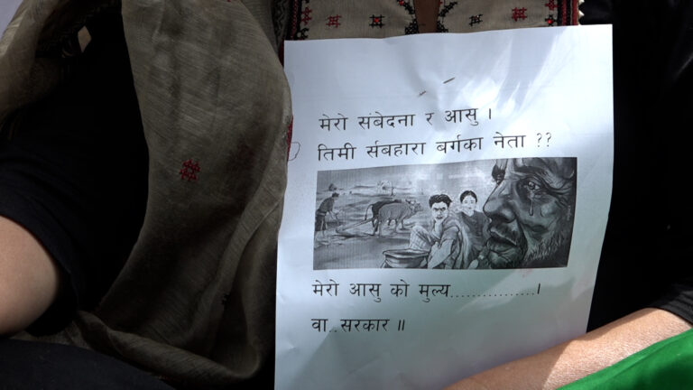 कार्यक्रममा सहभागिहरुले, बारी त जोतियो मल कहाँ छ ?, मेरो संवेदना र आँसु तिमी सर्वहाराको नेता??लगायत काप्लेकार्ड बोकेर प्रर्दशन गरेका छन् । धर्ना कार्यक्रमलाई सम्बोधन गर्दै, राप्रपा बाग्मति प्रदेश सांसद सुनिल केसीले किसान माथि राजनीति भइहरेको भन्दै आक्रोस पोखे ।