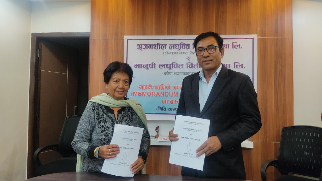 काठमाडौं । मानुषी र श्रीजनशील लघुवित्त वित्तीय संस्थाबीच मर्जर सम्झौता भएको छ । यी दुई बीच शुक्रबार एक आपसमा मर्ज हुने प्रारम्भिक सम्झौता भएको हो ।