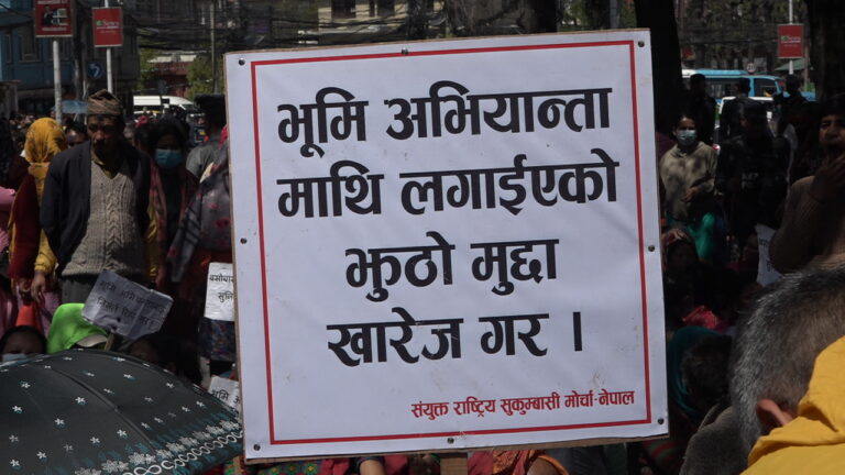 उनले भूमिहिनहरुलाई जग्गा धनीपूर्जा दिनुको साटो संविधान, कानुन विपरित उठिबास लगाउने प्रयास काठमाडौं महानगरपालिका र मेयर साहले गरिरहेको आरोप लगाउँदै उनले कडा आन्दोलनमाजाने चेतावनी दिए ।