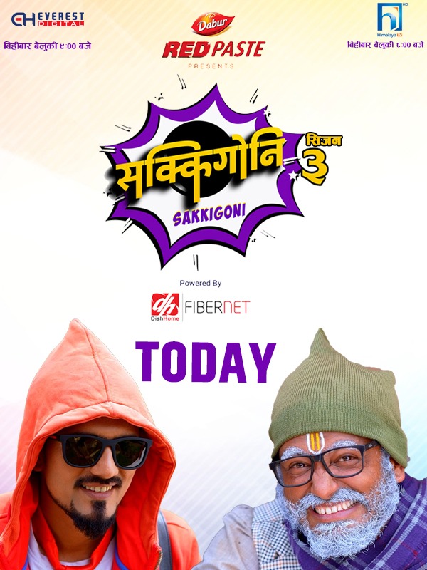 काठमाडाैं । लोकप्रिय टेलिभिजन हास्यश्रृंखला ‘सक्किगोनि’ तेस्रो सिजनको प्रसारण आज विहीवारदेखि प्रशारण हुने भएको छ । इएच डिजिटलमा सार्वजनिक भएकाे टिजर कार्यक्रममार्फत प्रसारण गर्ने मिति तय भएअनुरुप आज विहिवार साँझ ८ बजे हिमालय टेलिभिजनमा प्रशारण भए लगत्तै बेलुका ९ बजे इएच डिजिटलमा प्रशारण हुने बताइएकाे छ ।