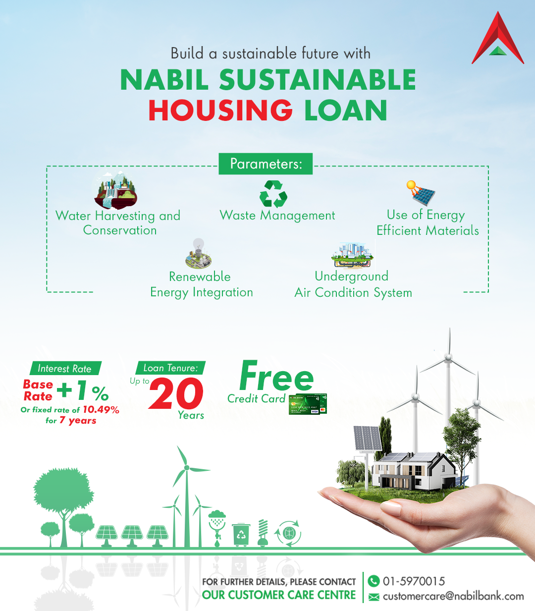 कर्जा पाउनका लागि आन्तरिक उपकरण प्रयोग गर्ने, विद्युत कम प्रयोग गर्ने (घर बनाउँदा प्रयोग भएका उपकरण प्रकाश आउने खालका प्रयोग गर्ने) र घरमा वैकल्पिक ऊर्जा प्रयोग गरेको हुनुपर्ने सर्त बैंकले राखेको छ ।