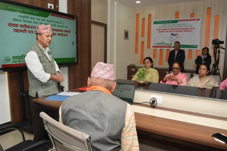 काठमाडौं । चन्द्रगिरि नगरपालिकामा रहेको चन्द्रागिरि वचत तथा ऋण सहकारी संस्था लि. र बुढानिलकण्ठमा रहेको ओमन्स क्रियशन बचत तथा ऋण सहकारी संस्थाबीच संस्था एकीकरण गर्ने÷गाभ्ने सम्बन्धी सम्झौता भएको छ ।