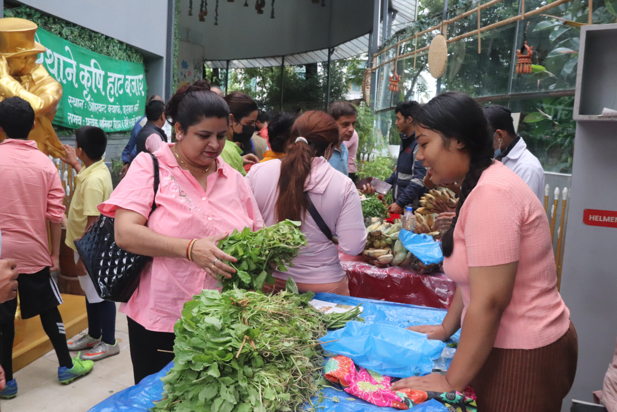 गाउँको उत्पादन सहरमा, रैथाने खाना घरघरमा भन्ने उद्देश्यले काठमाडौँ दरबारमार्गमा शनिबार रैथाने एग्री प्रोडक्ट्स नेपालले आयोजना गरेको रैथाने कृषि हाटबजारमा कृषि उपज बिक्री गर्ने किसान र खरिद गर्न सर्वसाधारण । यहाँ हरेक शनिबार नेपालका विभिन्न जिल्लाबाट कृषि उपज लिएर बिक्री गर्ने किसान आउने गर्दछन् । तस्बिर ः हरिराम भेटुवाल / रासस