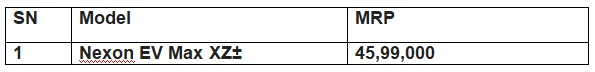 नेक्सन ईभी म्याक्स एक्स जेड प्लसको सुरुआती मूल्य ४५.९९ लाख राखिएको छ।