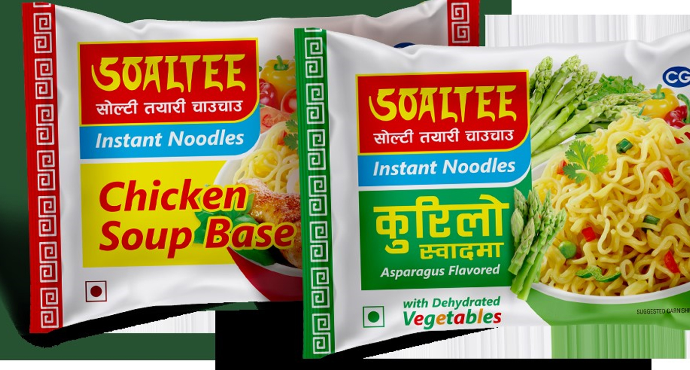 आकर्षक प्याकेटमा उपलब्ध ७५ ग्रामको कुरिलो स्वादको सोल्टी इन्स्ट्यान्टनूडल्सको उपभोक्ता मूल्य रू.२५ र ७० ग्रामको चिकेन स्वादको सोल्टी नूडल्सको उपभोक्ता मूल्य रू. २० रहेको छ ।