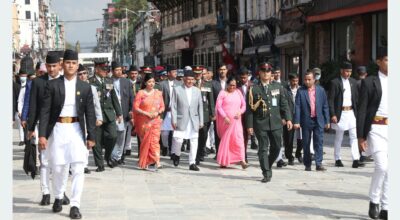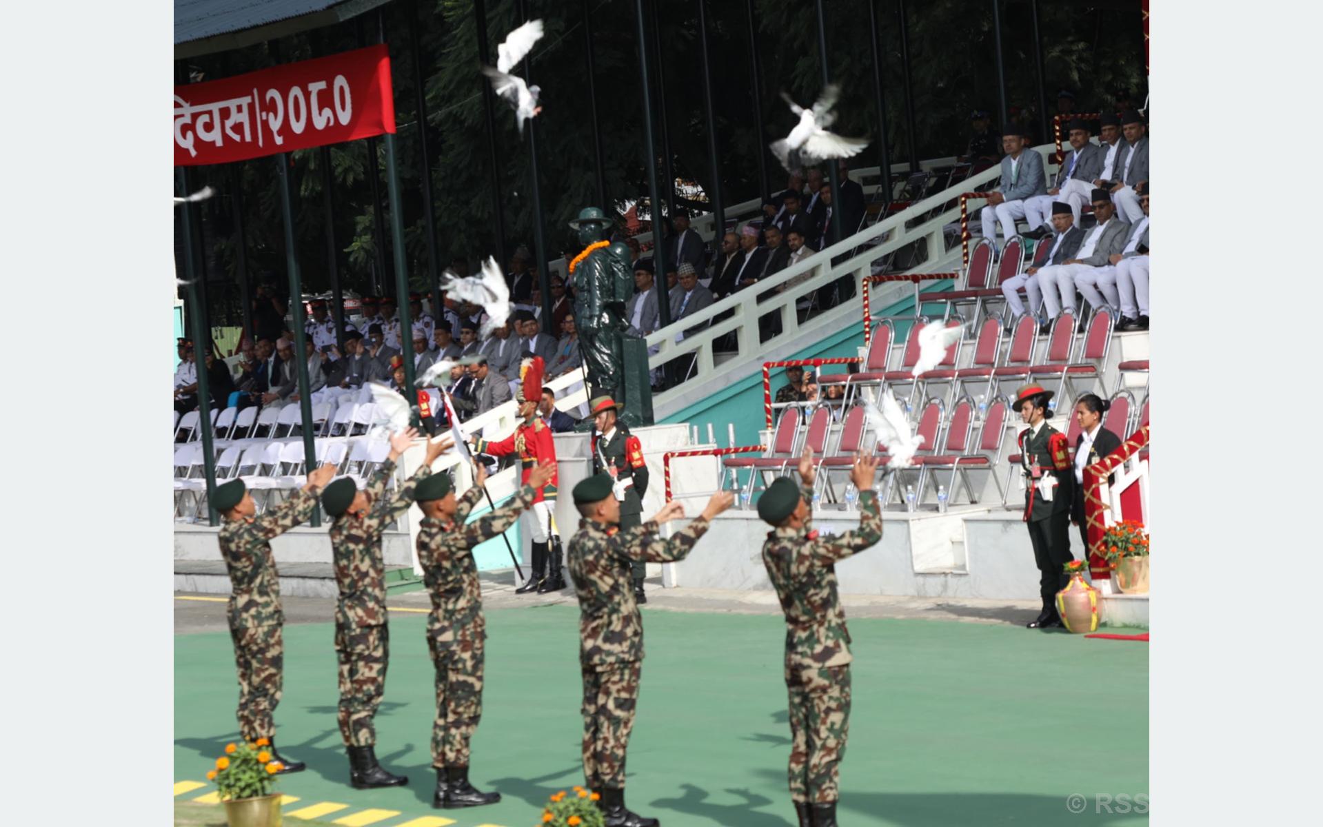 समारोहमा राष्ट्रपति रामचन्द्र पौडेल, कार्यवाहक प्रधानमन्त्री पूर्णबहादुर खड्का, राष्ट्रियसभा अध्यक्ष गणेशप्रसाद तिमिल्सिना, मन्त्री, सांसद, कर्मचारी, सुरक्षा अंगका प्रमुखलगायत सहभागी थिए ।