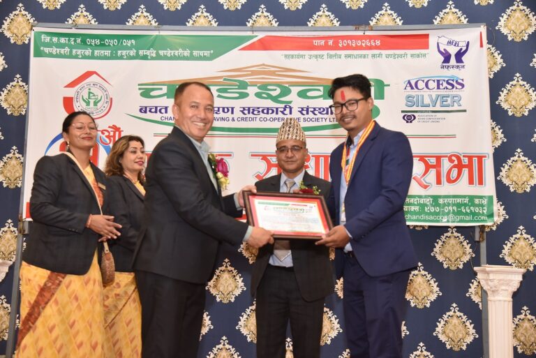 बनेपा । काभ्रेपलाञ्चोकमा रहेको चण्डेश्वरी बचत तथा ऋण सहकारी संस्था लि. को ३१ औँ वार्षिक साधारण सभा सम्पन्न भएको छ । संस्थाका अक्ष्यक्ष नविन भक्त बादे श्रेष्ठको अध्यक्षता, बागमति प्रदेश संस्कृति, पर्यटन तथा सहकारी मन्त्री माननिय पुकार महर्जनको प्रमुख आतिथ्यता, तथा बागमति प्रदेश प्रतिनिधि सभा सदस्य माननिय कञ्चन चन्द्र बादे र बनेपा नगरपालिका मेयर शान्ति रत्न शाक्यको विशिष्ठ आतिथ्यता र स्थानिय विभन्न सङ्घ संस्थाका प्रतिनिधि हरुको आतिथ्यतामा बनेपा ५ स्थित स्मार्ट प्यालेसमा ६ आस्वीन २०८० मा विविध निर्णय गरि संस्थाको ३१औँ वार्षिक साधारण सभा सम्पन्न भएको हो ।