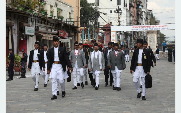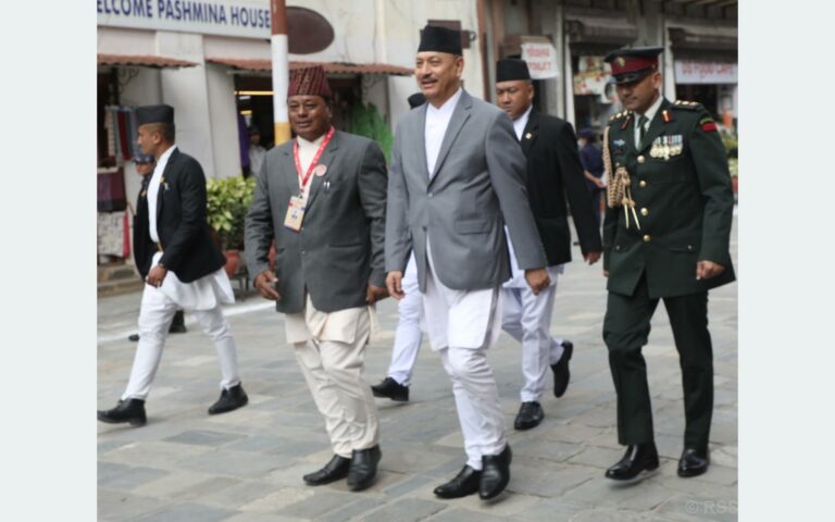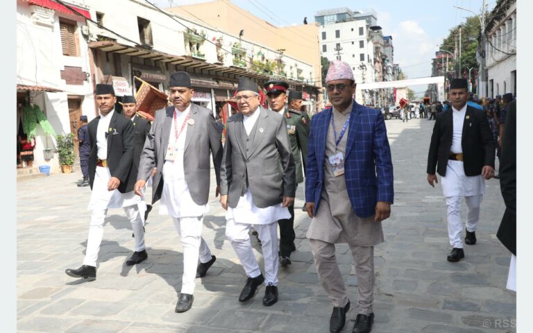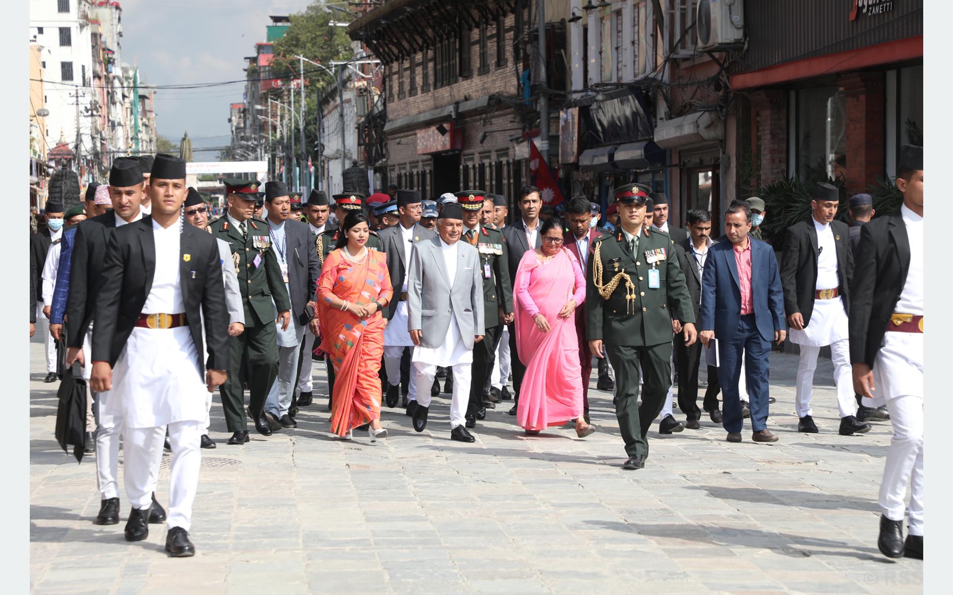 काठमाडौं । राष्ट्रपति रामचन्द्र पौडेलसहित सबै भिभिआइपीहरू इन्द्रजात्राको अवसरमा जुद्ध सालिकबाट हिँडेर वसन्तपुर गएका छन् । ईन्द्रजात्रा हेर्न जुद्धशम्शेरको शालिकदेखि उनीहरू बसन्तपुरसम्म हिँडेर गएका हुन् ।