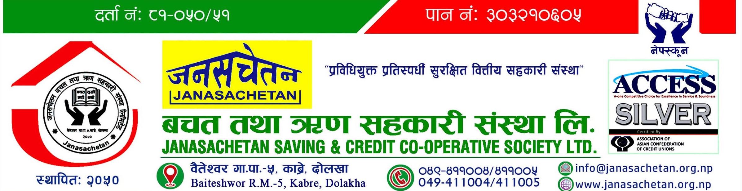 दोलखा । बैतेश्वर गाउँपालिका ५ काब्रेमा केन्द्रीय कार्यालय रहेको जनसचेतन बचत तथा ऋण सहकारी संस्थाको कुल सम्पत्ति २ अर्ब नाघेको छ । गत आर्थिक वर्ष २०७९/८० को असार मसान्तसम्म साकोसको कुल सम्पत्ति २ अर्ब २५ करोड ६० लाख ८७ हजार ३ सय ९३ रुपैँया पुगेको हो ।