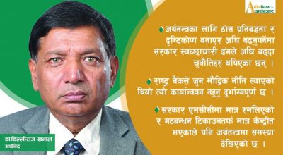 अर्थतन्त्रको संकटबाट मुक्त हुन सरकारले सुत्र बनाउनपर्छ : अरुणकुमार सुवेदी
